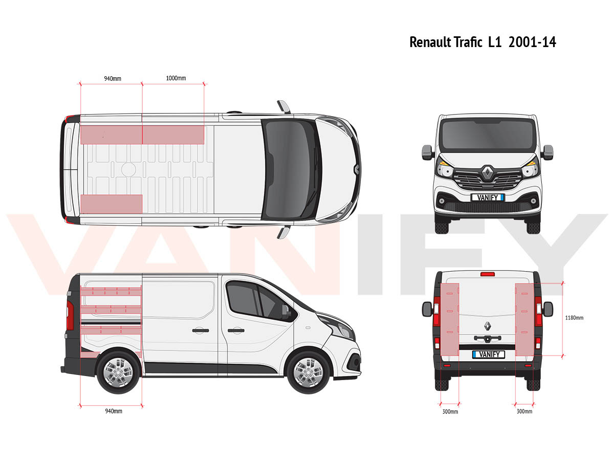 Estas unidades están diseñadas para la segunda generación de la Renault Trafic, fabricada entre 2001 y 2014. Está disponible en dos longitudes de carrocería, L1 y L2.