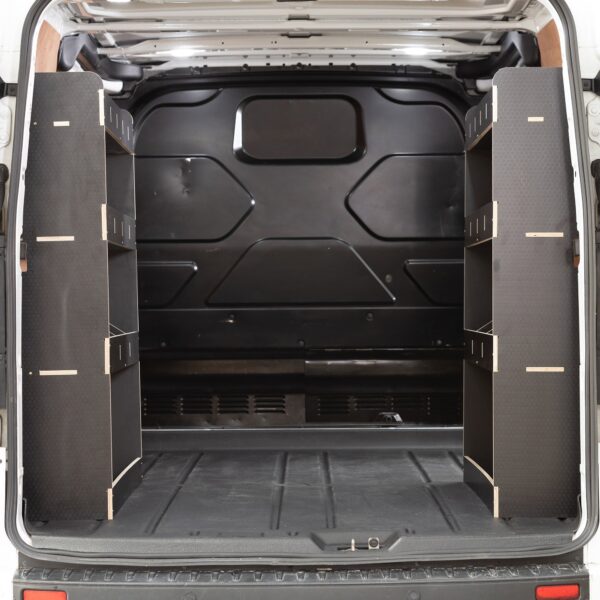 Fabricamos una serie de estanterías modulares para furgonetas Ford Transit Custom L2. Las unidades se fabrican para adaptarse a posiciones específicas de tu furgoneta. Pueden adquirirse por separado o combinarse para crear un sistema de almacenamiento personalizado para tu vehículo.