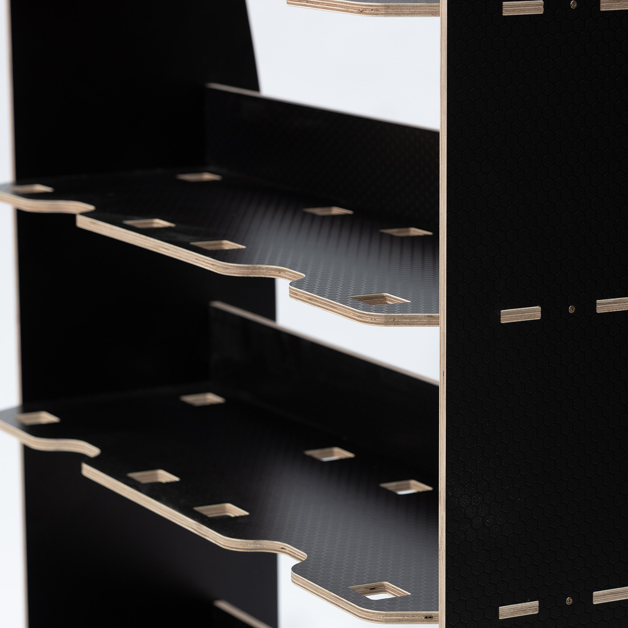 Estos bastidores para furgonetas están construidos con madera contrachapada cubierta con película fenólica Hexaboard de 12 mm de alta resistencia. Hexaboard ofrece una resistencia al desgaste hasta diez veces mayor que la del contrachapado estándar, lo que lo convierte en la opción preferida en industrias que requieren materiales de alta resistencia, resistentes a la humedad y duraderos.