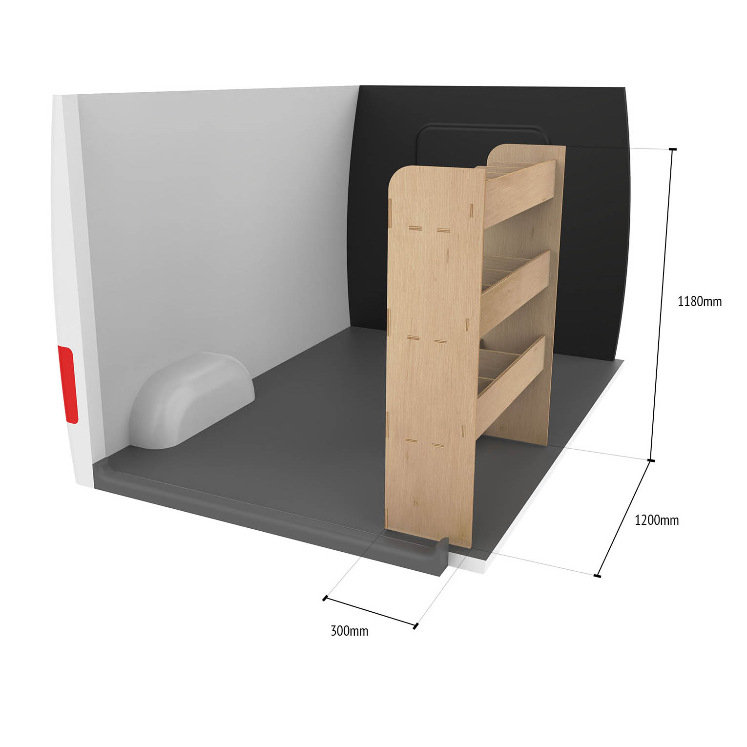 Dadas las variaciones en el revestimiento de la madera, es posible que sea necesario realizar un pequeño corte en los extremos de los tableros. Hemos procurado proporcionar con exactitud las dimensiones, descripciones y fotos de las estanterías para furgoneta. Algunas imágenes del producto son de carácter ilustrativo y pueden no ser una representación exacta del producto o de la escala del vehículo. Las dimensiones se muestran en estas imágenes para mayor claridad.