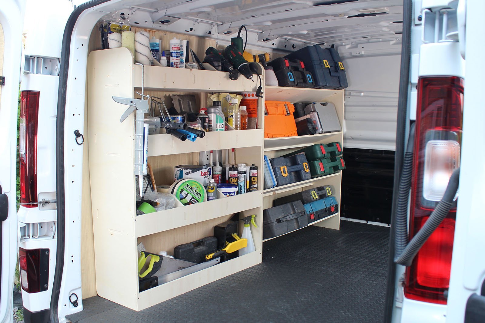 4 estantes angulares para cajas de herramientas y 3 estantes con varios compartimentos proporciona una enorme cantidad de espacio para almacenar, organizar y acceder fácilmente a todas tus herramientas, equipos y materiales. Nuestras estanterías para furgonetas te permiten encontrar fácilmente lo que necesitas, cuando lo necesitas.