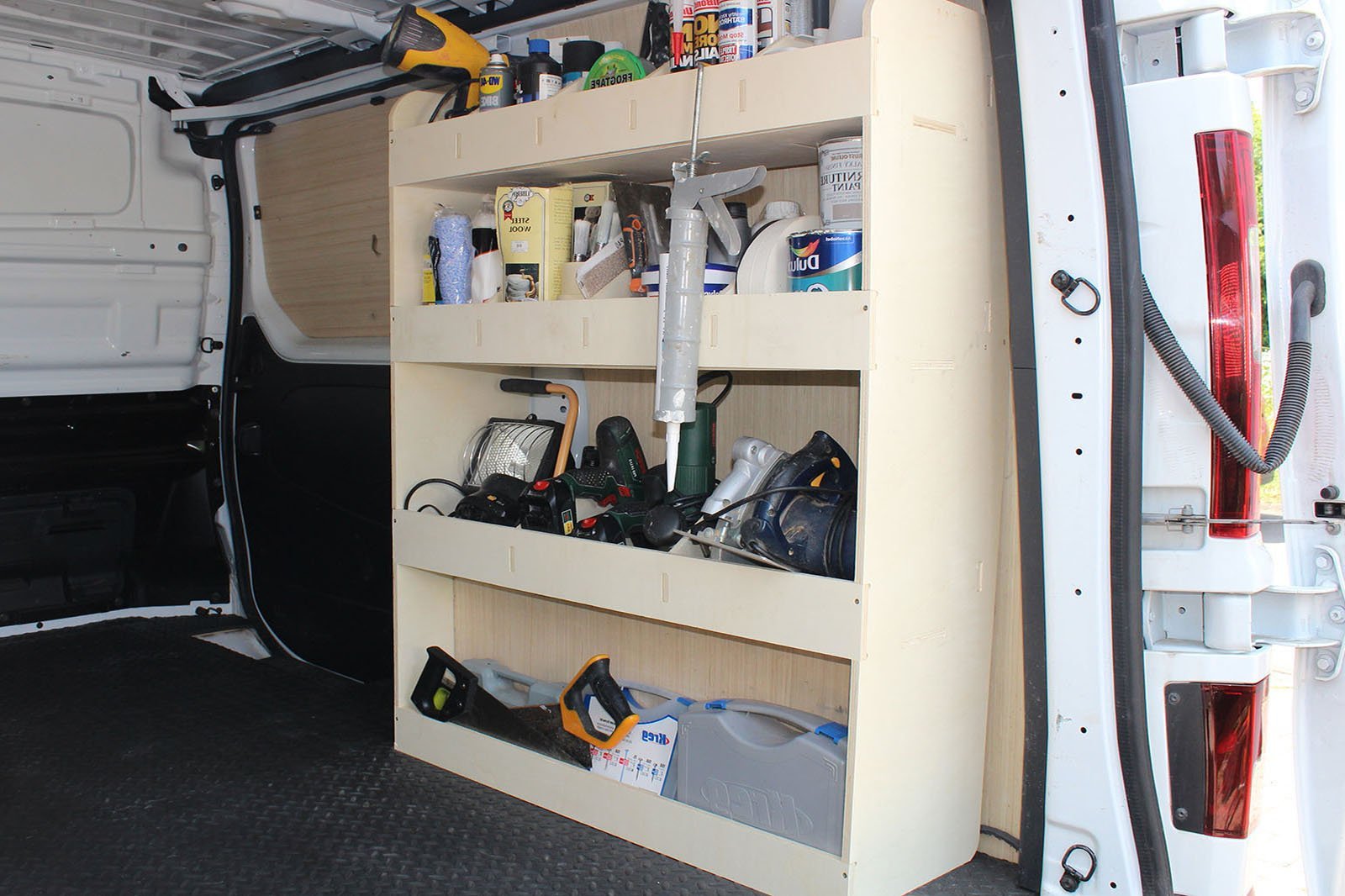 3 estantes con 12 compartimentos de almacenamiento proporciona una enorme cantidad de espacio para almacenar, organizar y acceder fácilmente a todas tus herramientas, equipos y materiales. Nuestras estanterías para furgonetas te permiten encontrar fácilmente lo que necesitas, cuando lo necesitas.